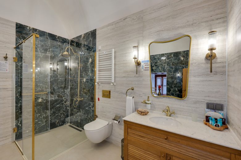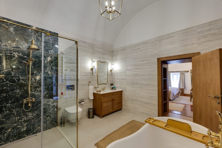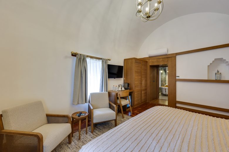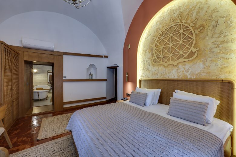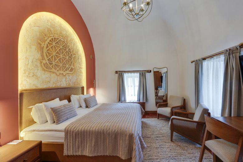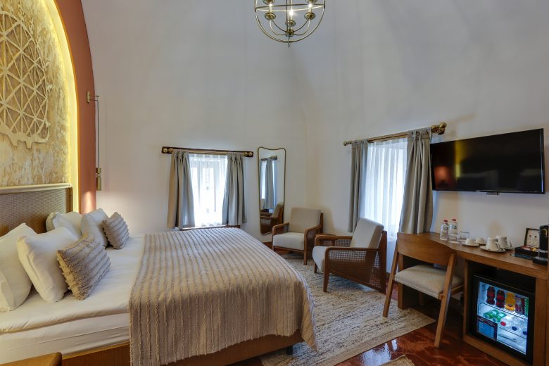 Odamız çift kişilik oda konseptindedir. 15m2’lik oda hacmine ek olarak 6.5m2’lik banyo & tuvalet hacmi bulunmaktadır. Odanın zemini orijinal haliyle korunmuş olup köşeli tuğladan yapılmıştır. …