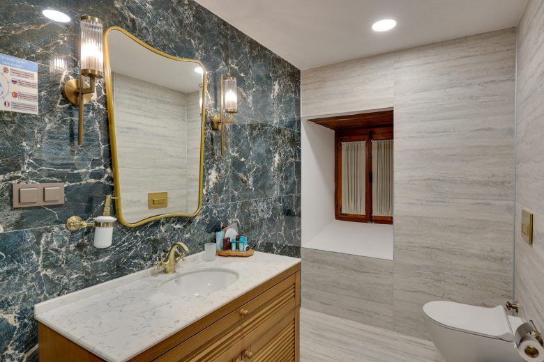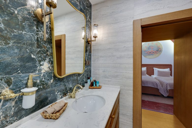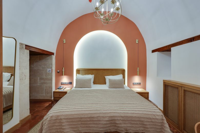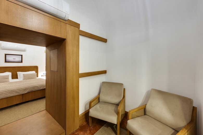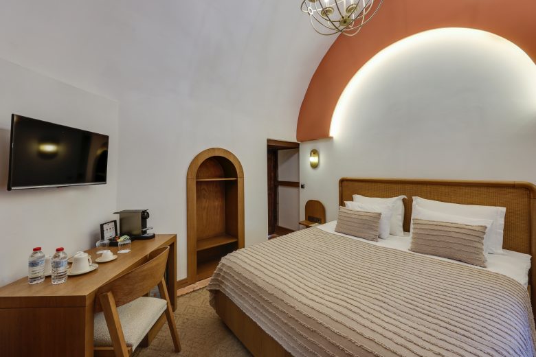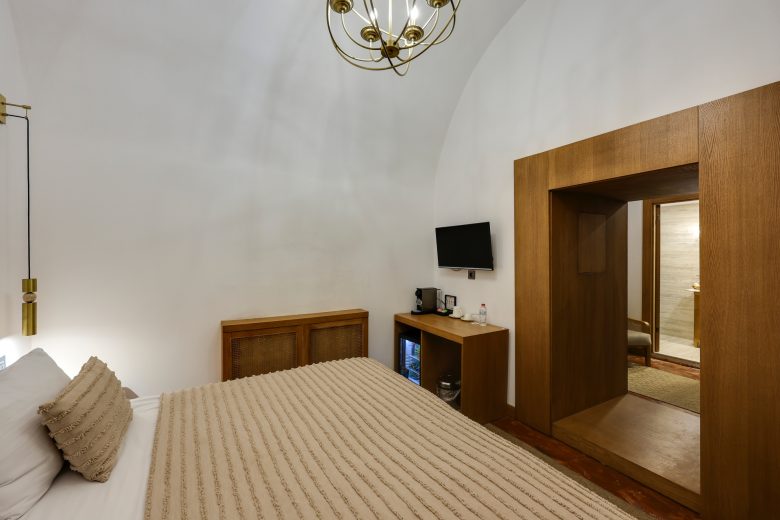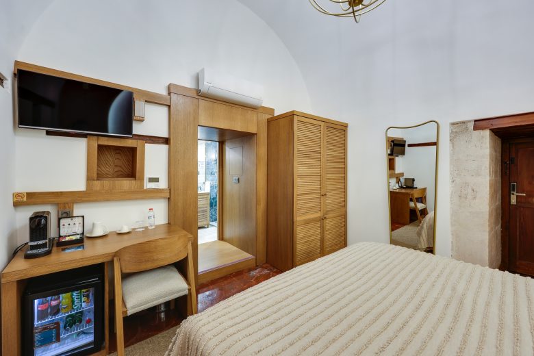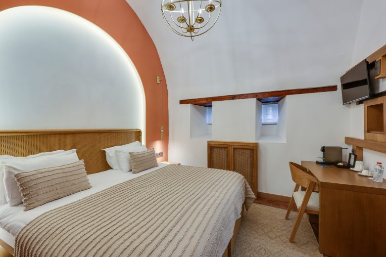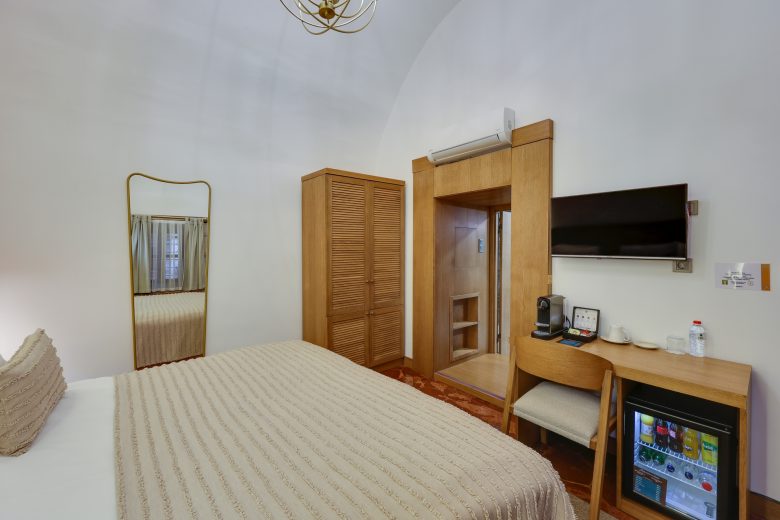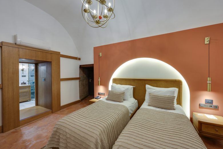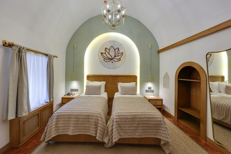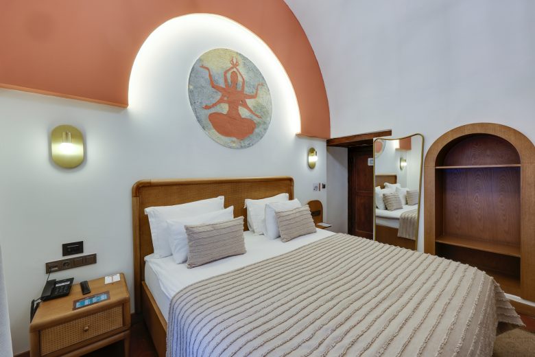 Odamız çift kişilik oda konseptindedir. 15m2’lik oda hacmine ek olarak 6.5m2’lik banyo & tuvalet hacmi bulunmaktadır. Odanın zemini orijinal haliyle korunmuş olup köşeli tuğladan yapılmıştır. …