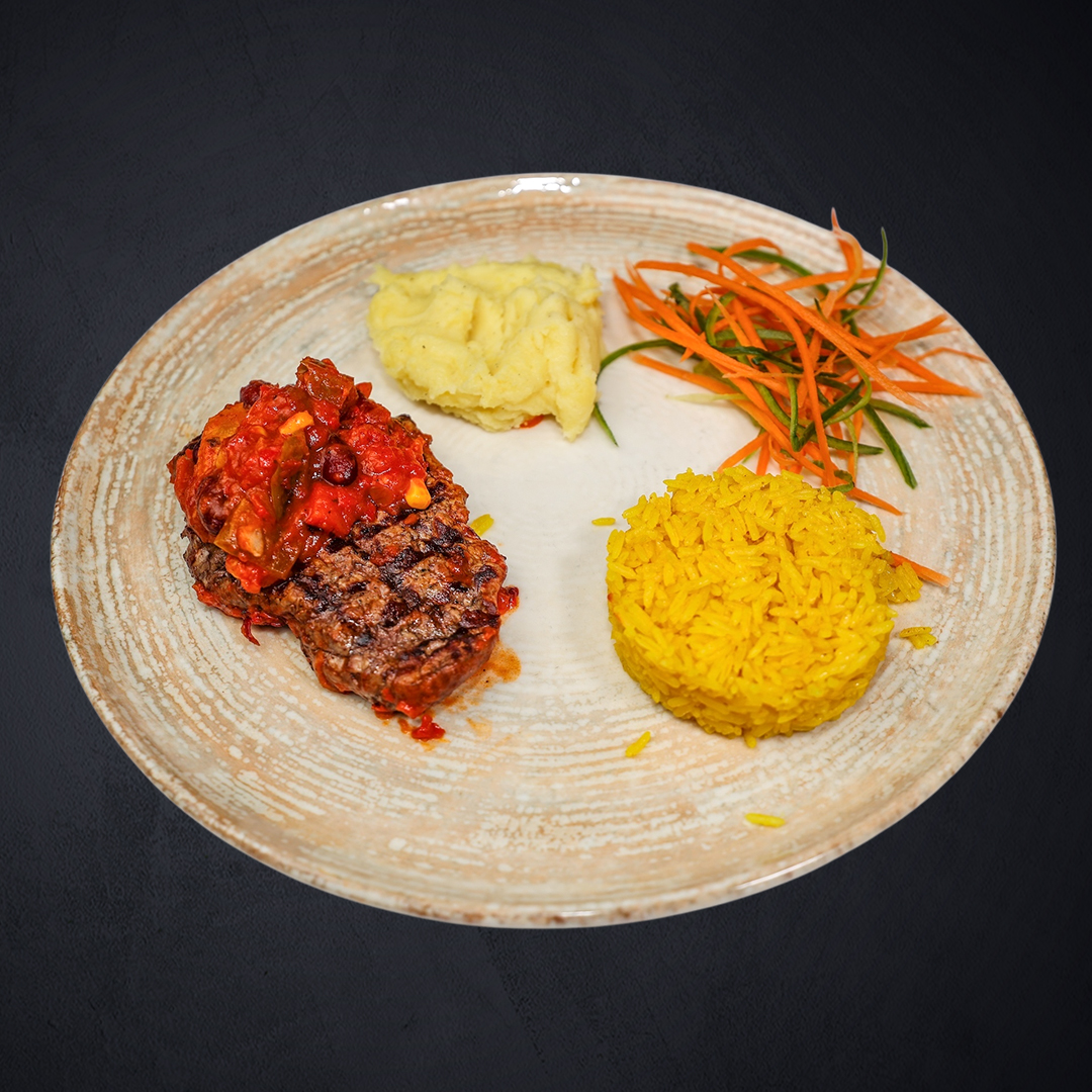 800 ₺- SOTELENMİŞ KIRMIZI KAPYA BİBER VE KURU SOĞAN, JULYEN TAVUK BONFİLE, DOMATES VE BAHARATLI FAJİTA SOS İLE SERVİS EDİLİR - SERVED WITH SAUTEED RED PEPPERS AND ONIONS, JULIEN CHICKEN STEAK, TOMATOES AND SPICY FAJITA SAUCE