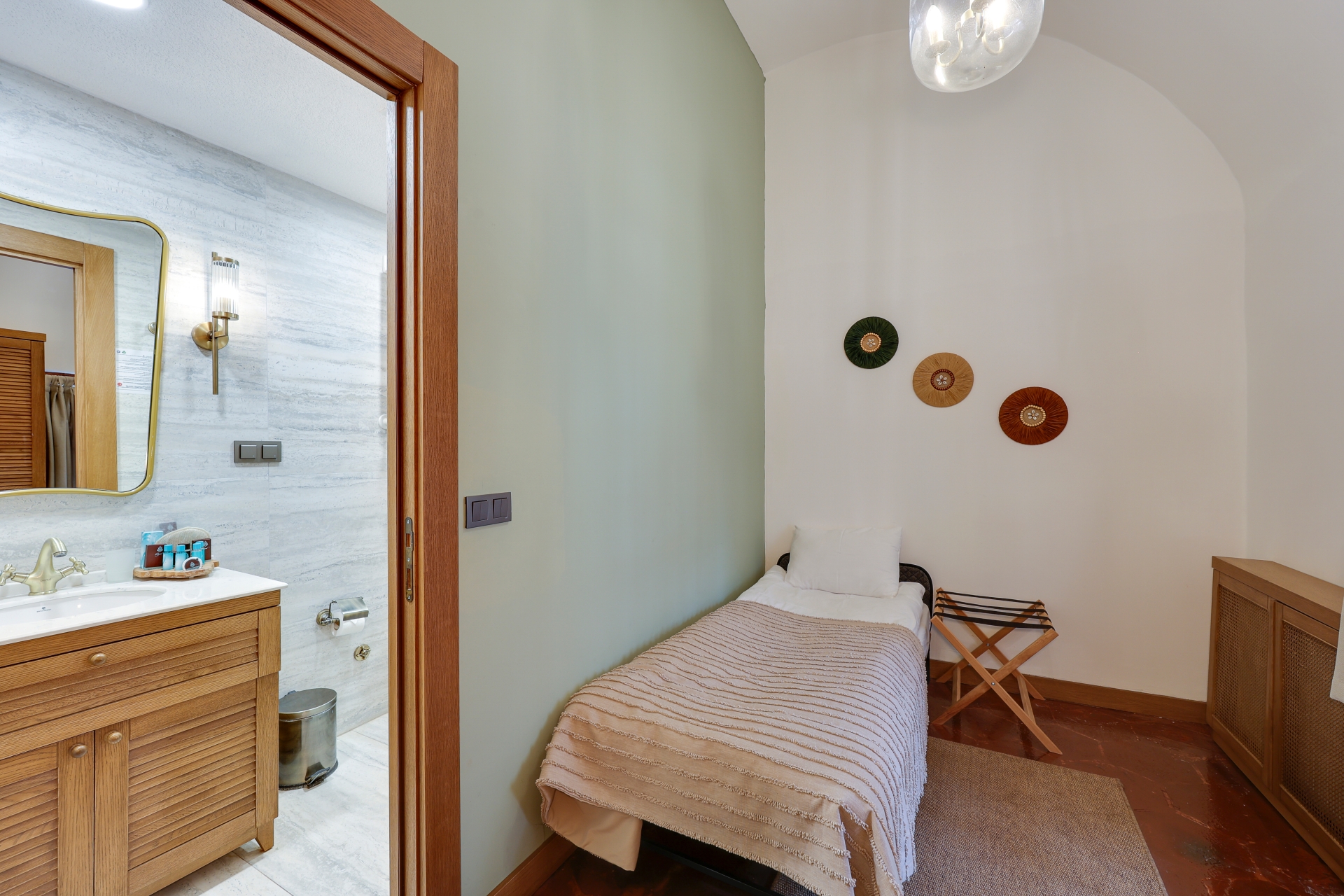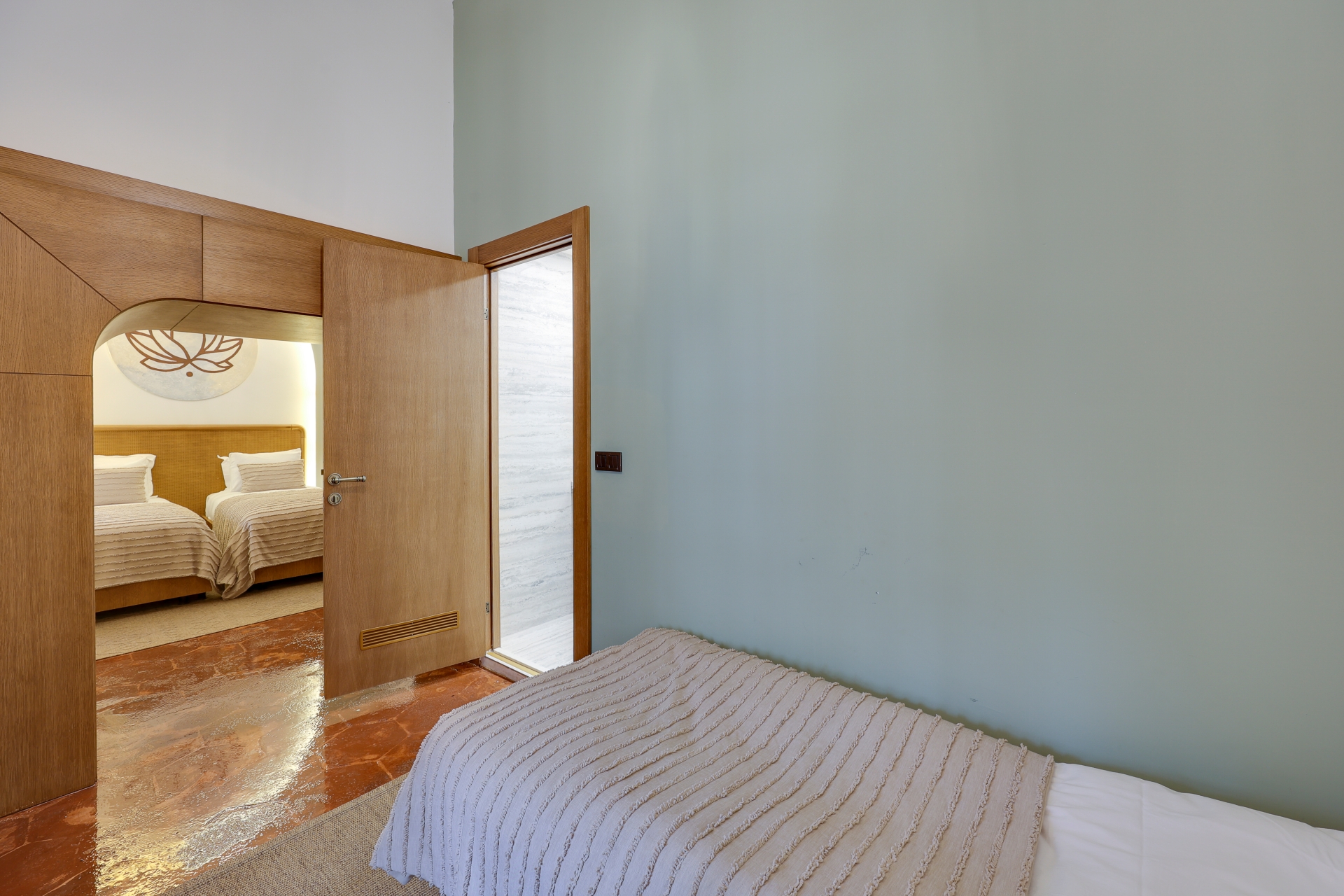 25m2 oda hacmine ek olarak 5m2 banyo & WC hacmi bulunmaktadır. Odanın zemini orijinal haliyle korunmuş olup köşeli tuğladan yapılmıştır. Oda tavanı tonoz örtü şeklinde 370 cm yüksekliğiyle ferah bir görünüm sunmaktadır.