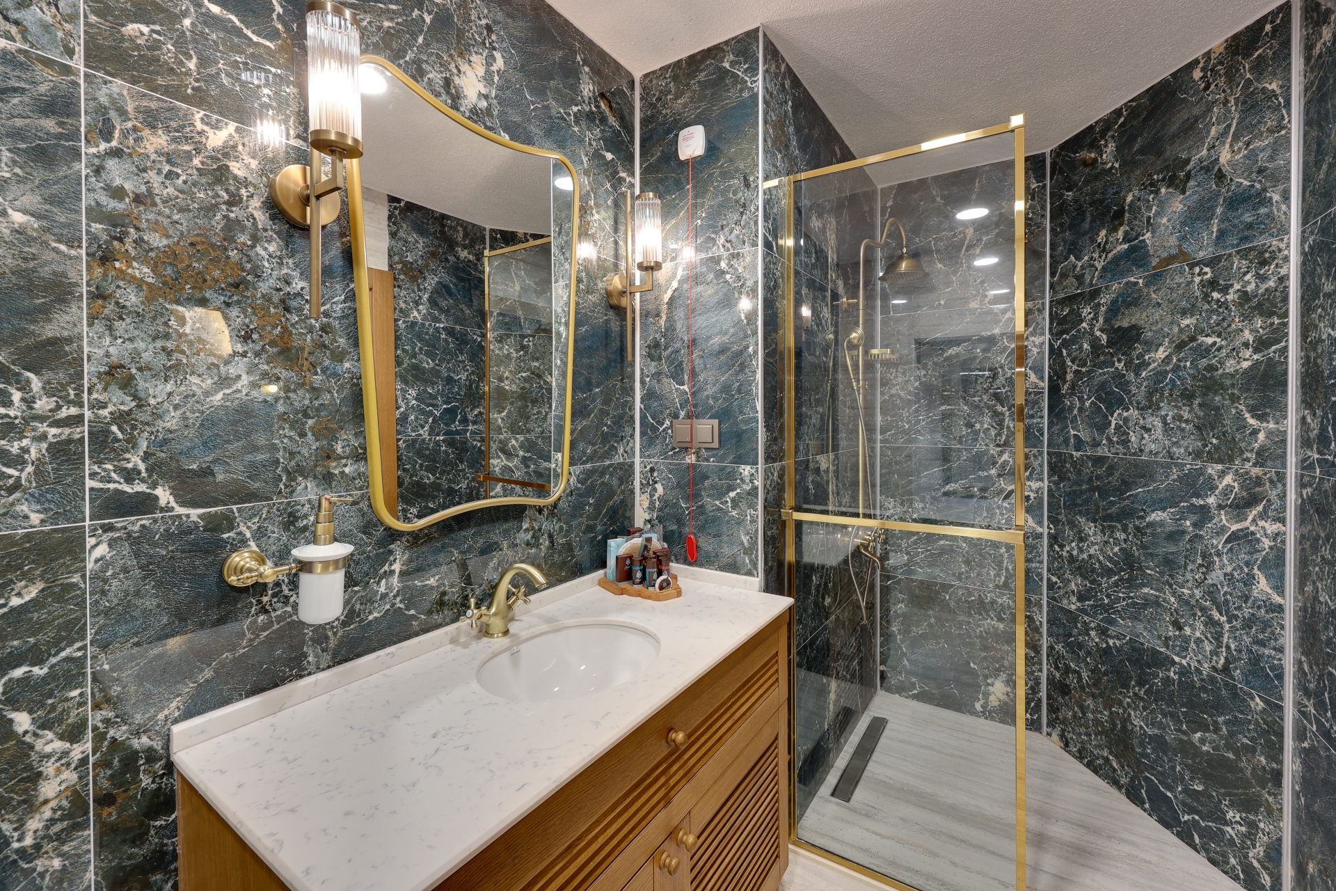 Banyo bölümünde ise tarihi mekan konseptine uygun olarak pirinç malzemeden sıhhi tesisat ve banyo armatürleri seçilmiştir. Banyoda, panjur detaylarına sahip kapılı ve çekmeceli banyo dolabı, rustik ayna ve havlu askısı bulunmaktadır. Tarihi mekan konseptine uygun olarak her türlü banyo aksesuarı kullanıcılara sunulmaktadır. (Banyo tekstili ürünleri ve banyo malzemeleri eklenecektir)