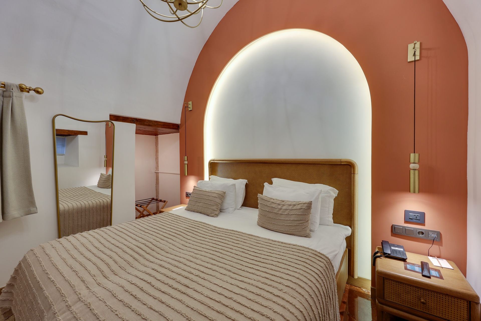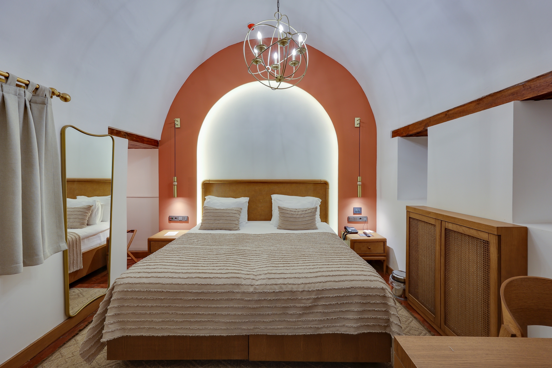 Odada çift kişilik yatak, minibar, su ısıtıcısı fonksiyonlu Nespresso makinesi, emanet kasası, klima, çalışma masası ve koltuk bulunmaktadır. Çift kişilik yatak ihtiyaca göre ayrılarak iki ayrı tek kişilik yatak olarak düzenlenebilir. Ahşap mobilyalar tarihi mekana uygun meşe ve fındık detaylarıyla oluşturulmuştur. Petekler ahşap ve fındık örtü ile gizlenmiştir. Yatak tekstili ürünleri tarihi dokuya uygun birinci sınıf pamuk ve keten kumaşlardan ve organik malzemelerden seçilmiştir.